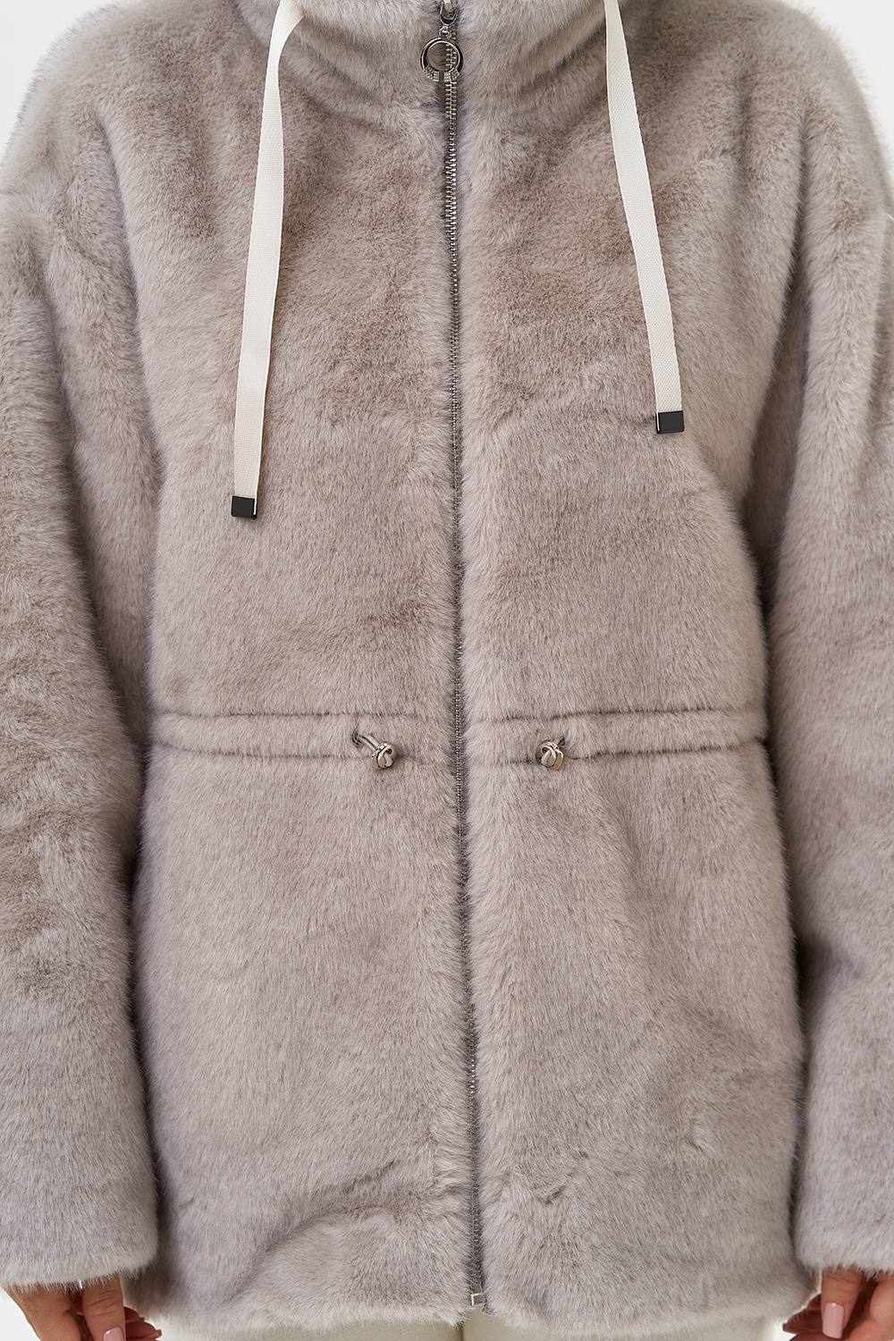 Фасон - прямой Длина изделия - 70 см Цвет - серый Материал - экомех Состав полотна - полиэстер 100% Подкладка - полиэстер 100% Вид застежки - молния, кулиска на талии Вид ворота - капюшон Фасон рукава - спущенное плечо, длинный |