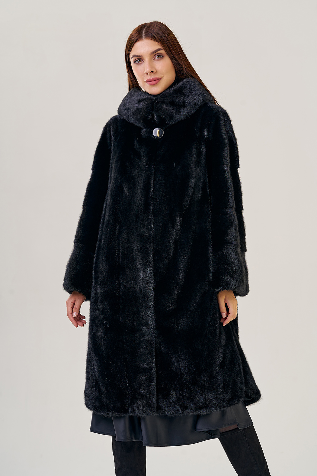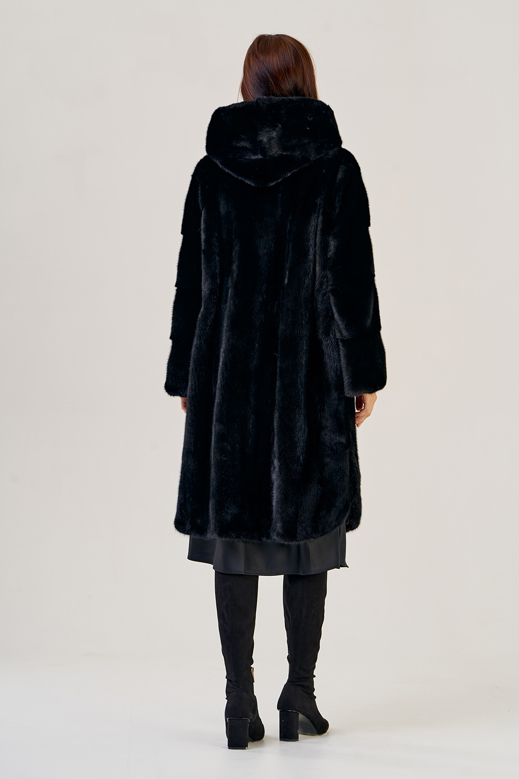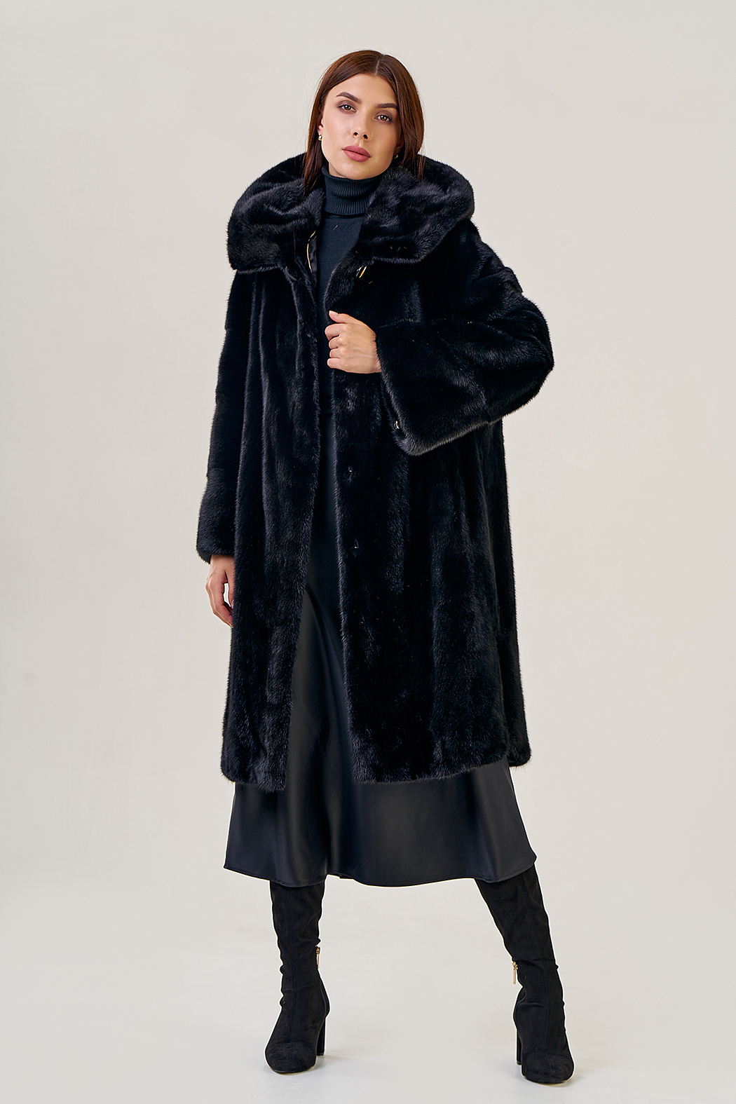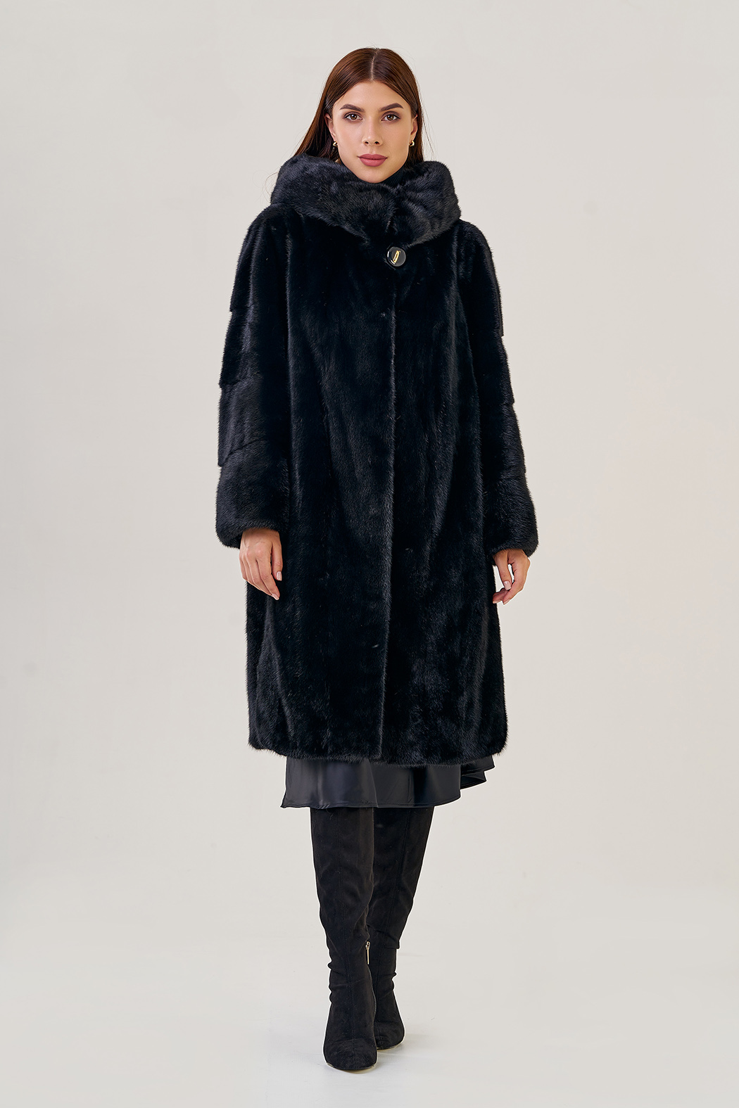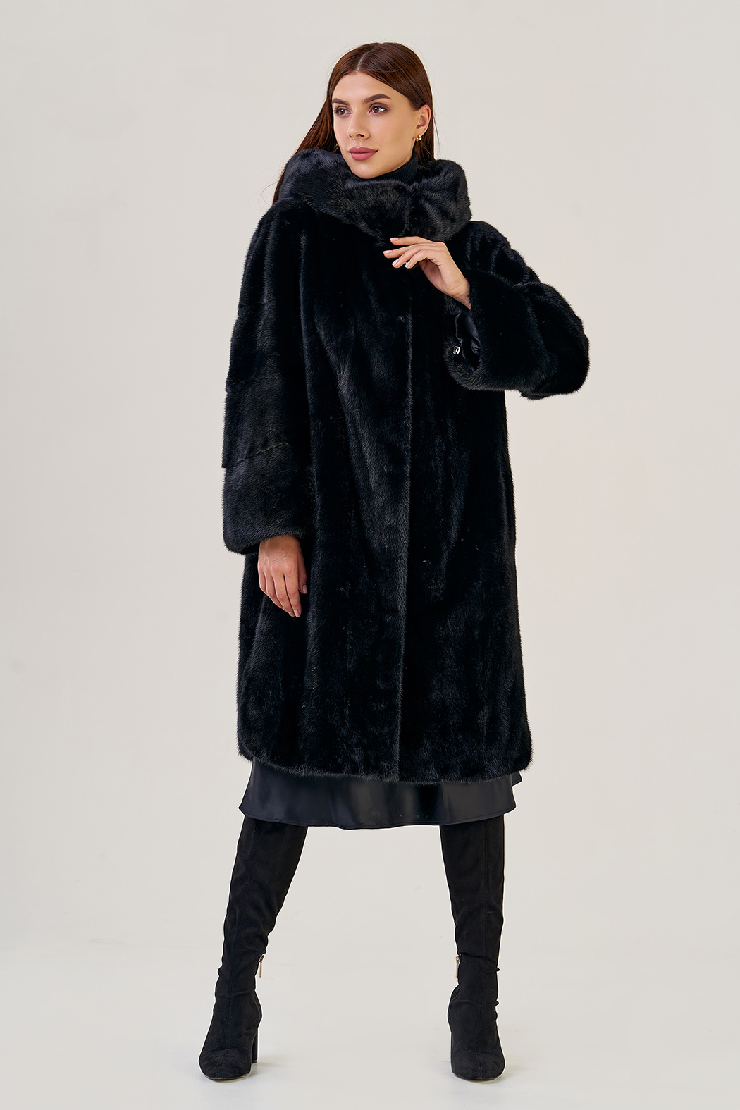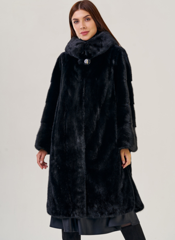 Норковая шуба с капюшоном, фасон -"рубашка".